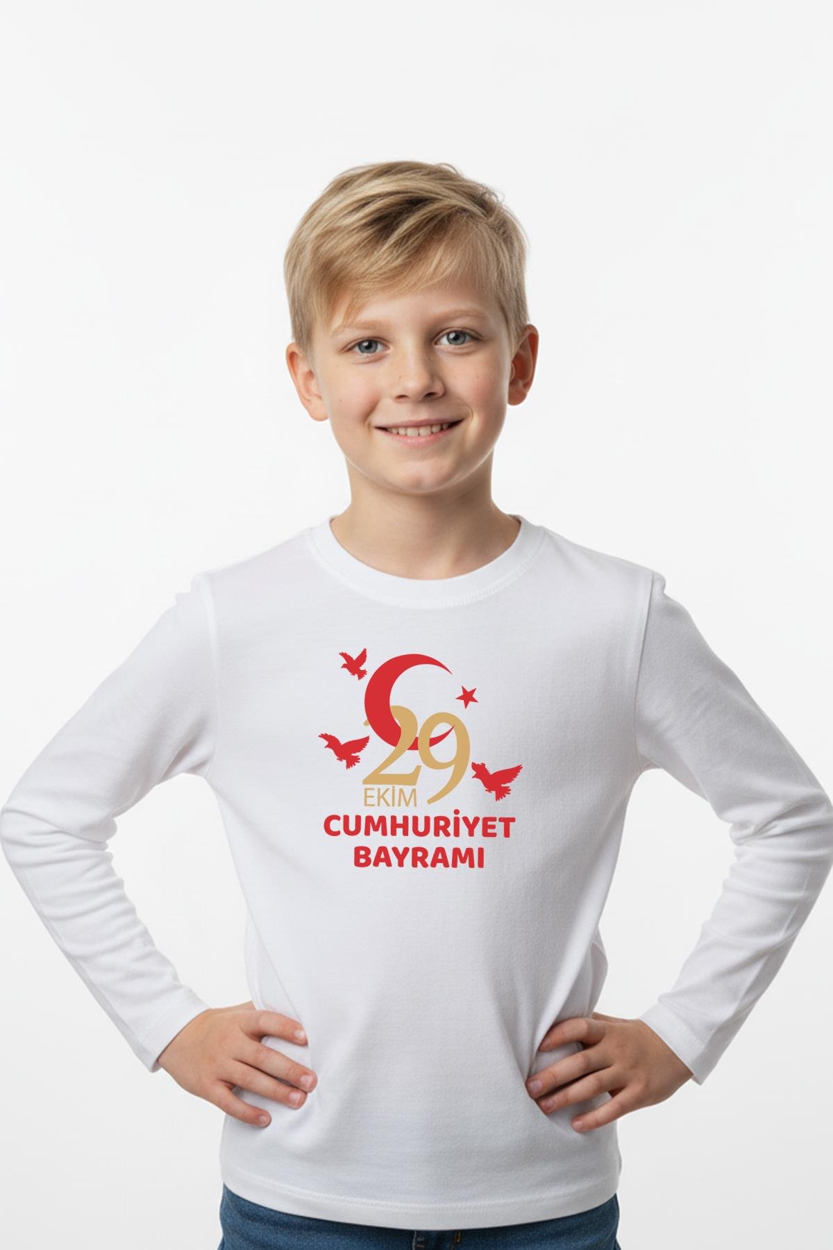 29 Ekim Baskılı Detaylı Uzun Kollu Erkek Çocuk Sweatshirt