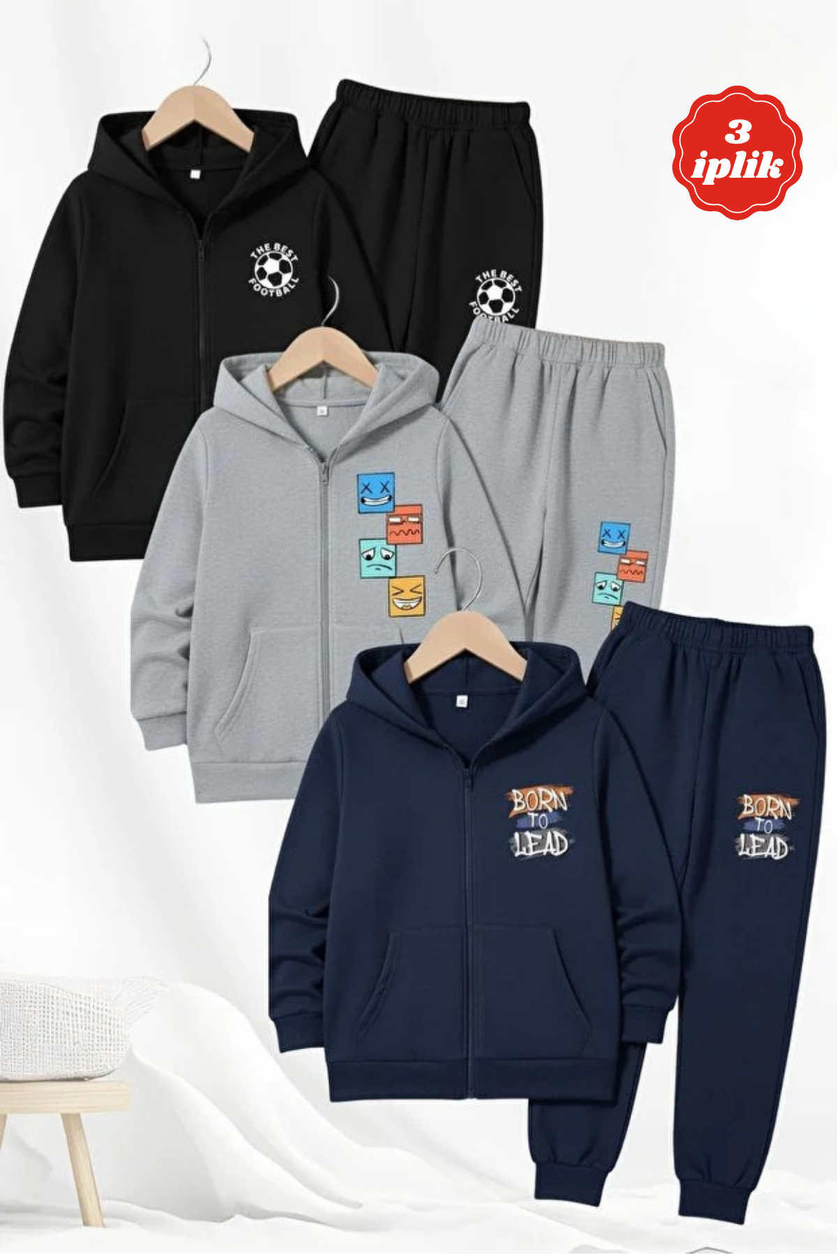 - Üç parçadan oluşan set, hem üst hem de alt eşofman takımını içerir.