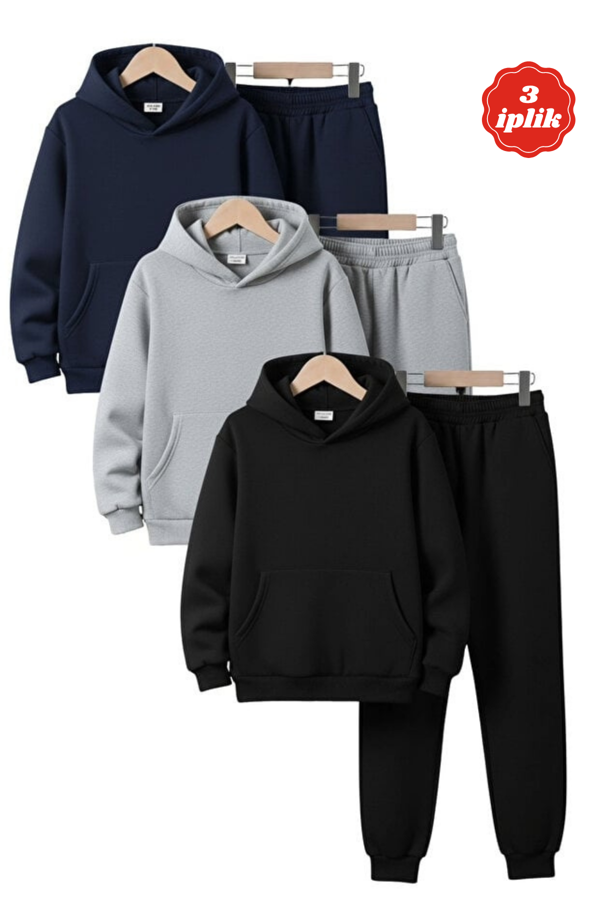 - Günlük kullanıma uygun, rahat ve şık bir tasarım sunan 3'lü eşofman takımı.