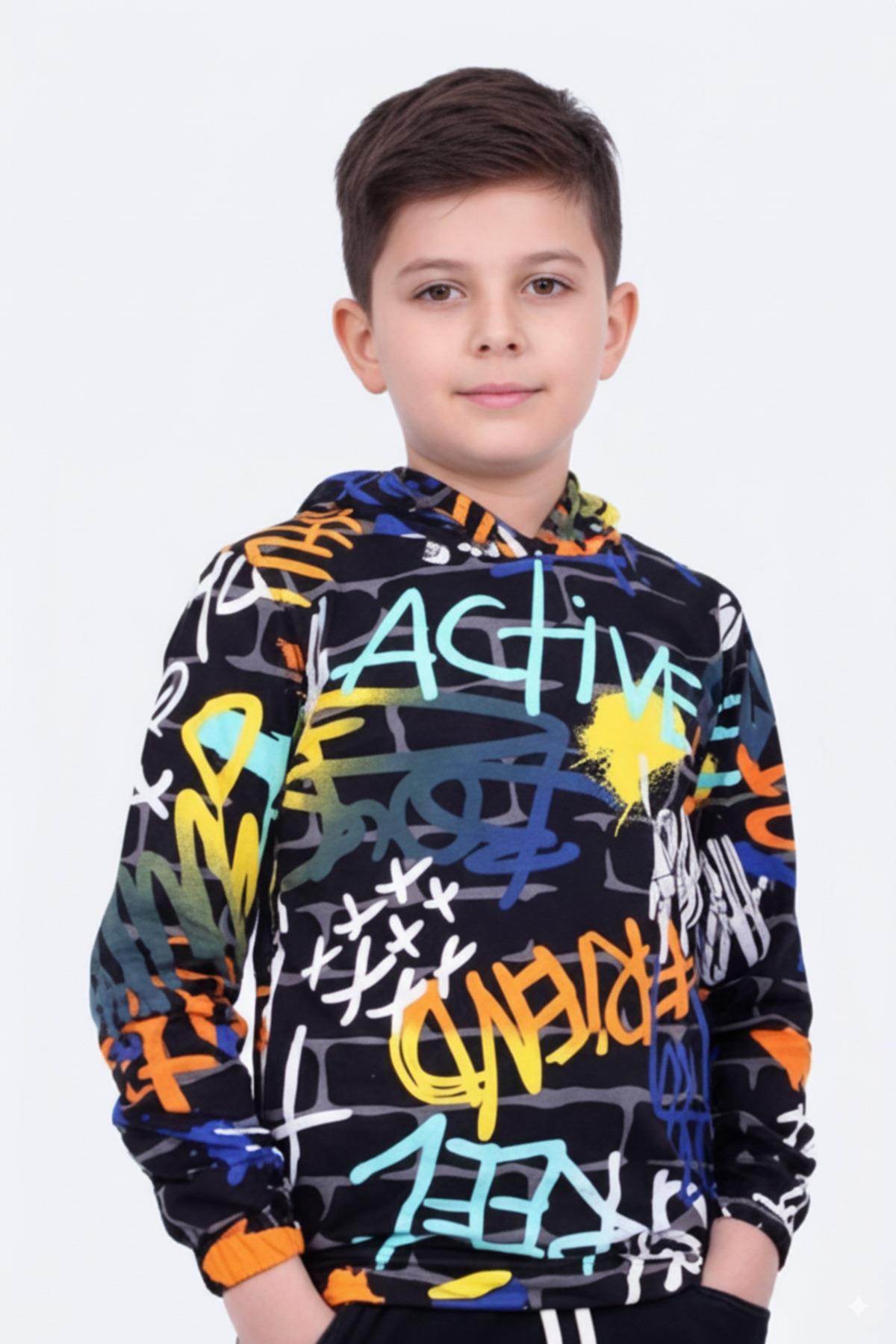 KAPÜŞONLU DESENLİ ERKEK ÇOCUK SWEATSHİRT